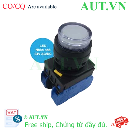 Spec: Có đèn; 24VAC, 24VDC; D22; Trắng; 2NO; Nhấn nhả; Round extended; Chất liệu vỏ: Plastic; Chất liệu vòng bezel: Plastic