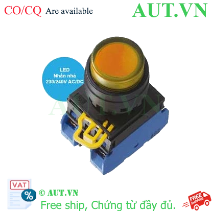 Spec: Có đèn; 230VAC, 240VAC; D22; Màu hổ phách; 2NO; Nhấn nhả; Round extended; Chất liệu vỏ: Plastic; Chất liệu vòng bezel: Plastic