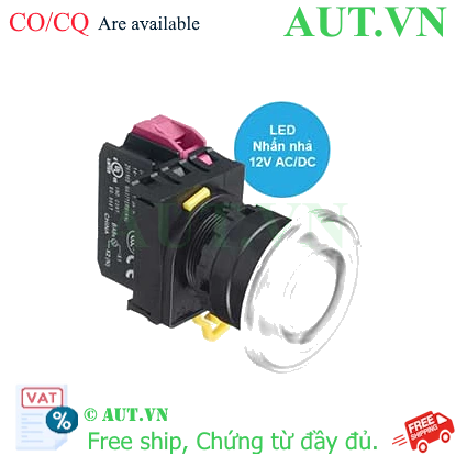 Spec: Có đèn; 12VAC, 12VDC; D22; Trắng; 1NC; Nhấn nhả; Mushroom; Chất liệu vỏ: Plastic; Chất liệu vòng bezel: Plastic