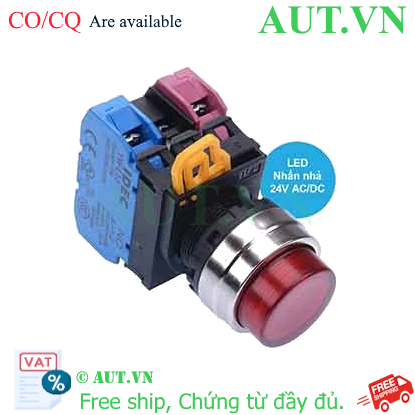 Spec: Có đèn; 24VAC, 24VDC; D22; Đỏ; 1NO+1NC; Nhấn nhả; Round extended; Chất liệu vỏ: Plastic; Chất liệu vòng bezel: Metal