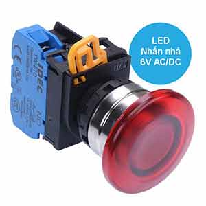 Spec: Có đèn; 6VAC, 6VDC; D22; Đỏ; 1NO; Nhấn nhả; Mushroom; Chất liệu vỏ: Plastic; Chất liệu vòng bezel: Metal