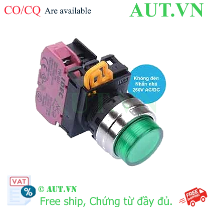 Spec: Có đèn; Không bao gồm đèn; D22; Xanh lá; 1NC; Nhấn nhả; Round extended; Chất liệu vỏ: Plastic; Chất liệu vòng bezel: Metal