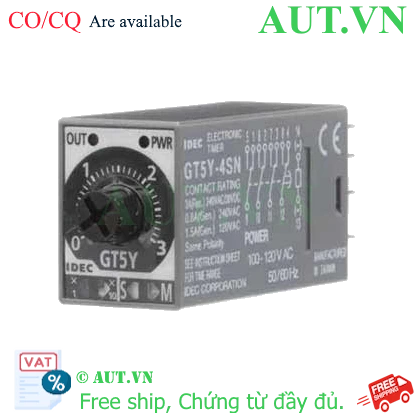 IDEC Analog Timer GT5Y Series GT5Y-4SN6A100 chính hãng 0.1s...60h100...120VACĐầu ra trễ: 4PDTThời gian hoạt động: Power ON startChế độ hoạt động: Cycle OFF start, Cycle ON start, Interval, ON delay 1.000 ₫ 900 ₫ Thêm vào giỏ hàng Thêm vào danh sách so sánh Danh sách yêu thích tùy chỉnh được Thêm vào danh sách yêu thích