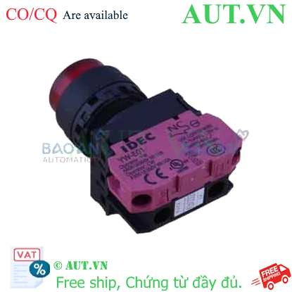 Đặc điểm nổi bật: YW1L-M2E01QM3R | Nút nhấn nhả có đèn IDEC màu đỏ D22