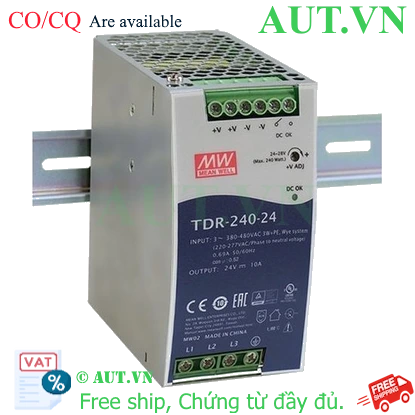 Bộ chuyển đổi nguồn công nghiệp 3 pha 240W MEAN WELL TDR-240-48 5A240W48VDCSố đầu ra: 1Lắp thanh ray DINNguồn cấp: 340...550VAC, 480...780VDC 1.000 ₫ 900 ₫ Thêm vào giỏ hàng Thêm vào danh sách so sánh Danh sách yêu thích tùy chỉnh được Thêm vào danh sách yêu thích