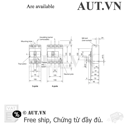 Phụ kiện mua rờiAlarm switch: AL, Auxiliary switch: AX, Boxes for circuit breakers and   boxed circuit breakers, Earth fault preventing barriers (BA-G), Electrical operated circuit breakers and electrical operation devices, F-Type operating handle, Handle lock device: HL, Handle lock device: HL-S, Handle lock device: LC, IEC 35-mm rail mounting adapters , Insulating barrier-plug-in (BA-P), Insulating barriers-front (BA-F), Insulating barriers-plug-in (BA-P), Insulating barriers-rear (BA-B), Mechanical interlocks (MI), Pre-alarm, Shunt trip: SHT, With lead-wire terminal block: SLT, Terminal cover: BTC, Terminal cover: PTC, Terminal cover: TC-L, Terminal cover: TC-S, Terminal cover: TTC, Undervoltage trip: UVT, V-type operating handle [...]