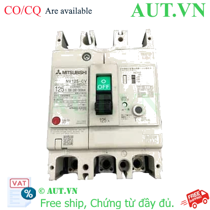Đặc điểm nổi bật: Aptomat khối chống giật 3 pha (ELCB) Mitsubishi NV125-CV 3P 125A 10kA 1.2.500mA TD .