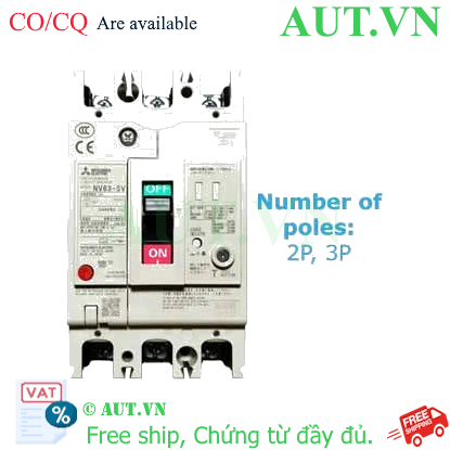 Thông tin chi tiết của: CB chống giật Mitsubishi NV63-SV 3P 20A 7.5kA 1.2.500mA
