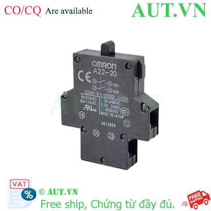 Công tắc nút nhấn Omron A22-20 Bắt vítDPST (2NO)Kiểu tiếp điểm: with body/fixing collar nhà chế tạo: Omron SKU: A22-20 Tải xuống mẫu 250.610 ₫ Số lượng: Thêm vào giỏ hàng Danh sách yêu thích tùy chỉnh được Thêm vào danh sách yêu thích Thêm vào danh sách so sánh Gửi email cho một người bạn Bảng Thông Số Kỹ Thuật Sản Phẩm: Công tắc nút nhấn Omron A22-20 Thông Tin Chi Tiết Sản Phẩm: A22-20 ModelA22-20 Kiểu tiếp điểmwith body/fixing collar Cấu hình tiếp điểmDPST (2NO) Phương pháp đấu dâyBắt vít LoạiKhối tiếp điểm phụ cho nút ấn/ công tắc Thiết bị tương thíchCông tắc, Nút nhấn Dòng sản phẩm tương thíchA22 series Công suất chuyển mạch10A at 110VAC, 10A at 24VAC, 6A at 220VAC, 2A at 440VAC, 3A at 380VAC, 0.2A at 380VDC, 0.6A at 220VDC, 10A at 24VDC, 2A at 110VDC [...] Kết nối mô-đunKhông Vị trí lắpLắp phía sau Tiêu chuẩnCUL, UL, CCC, EN/IEC 60947-5-1 Cam Kết Chất Lượng và Dịch Vụ Chúng tôi có hơn 35.000 sản phẩm vì vậy hãy liên hệ với chúng tôi Để được tư vấn và check tình trạng hàng bạn nhé! AUTO TECH VN cam kết: 1. Hàng Chính Hãng. 2. Xuất được Hóa đơn VAT. 3. Cấp CO/CQ đầy đủ. 4. Giá cạnh tranh. 5. Sản phẩm bảo hành theo chính sách của hãng.6. Miễn Phí hỗ trợ cài đặt và sử dụng thiết bị. Thông Tin Liên Hệ Mua Hàng AUTO TECH VN - AUT.VN ĐT/ Zalo : 0968.053.025 Email: support@aut.vn Email2: sale@aut.vn Địa chỉ: 07 KĐT Flora Mizuki, Đường Số 1, Bình Hưng, Bình Chánh, Hồ Chí Minh Thẻ sản phẩm Công tắc nút nhấn (80433) , Omron (49476) , A22 series (1438) Những sản phẩm liên quan Công tắc nút nhấn Omron A22-10 Bắt vítSPST (1NO)Kiểu tiếp điểm: with body/fixing collar 106.305 ₫ Thêm vào giỏ hàng Thêm vào danh sách so sánh Danh sách yêu thích tùy chỉnh được Thêm vào danh sách yêu thích Công tắc nút nhấn Omron A22-01 Bắt vítSPST (1NC)Kiểu tiếp điểm: with body/fixing collar 108.395 ₫ Thêm vào giỏ hàng Thêm vào danh sách so sánh Danh sách yêu thích tùy chỉnh được Thêm vào danh sách yêu thích Công tắc nút nhấn Omron A22-02 Bắt vítDPST (2NC)Kiểu tiếp điểm: with body/fixing collar 222.110 ₫ Thêm vào giỏ hàng Thêm vào danh sách so sánh Danh sách yêu thích tùy chỉnh được Thêm vào danh sách yêu thích Công tắc nút nhấn Omron A22-11 Bắt vítDPST (1NO+1NC)Kiểu tiếp điểm: with body/fixing collar 237.500 ₫ Thêm vào giỏ hàng Thêm vào danh sách so sánh Danh sách yêu thích tùy chỉnh được Thêm vào danh sách yêu thích Công tắc nút nhấn Omron A22-01S Bắt vítSPST (1NC)Kiểu tiếp điểm: with body/fixing collar 282.910 ₫ Thêm vào giỏ hàng Thêm vào danh sách so sánh Danh sách yêu thích tùy chỉnh được Thêm vào danh sách yêu thích Công tắc nút nhấn Omron A22-10S Bắt vítSPST (1NO)Kiểu tiếp điểm: with body/fixing collar 282.910 ₫ Thêm vào giỏ hàng Thêm vào danh sách so sánh Danh sách yêu thích tùy chỉnh được Thêm vào danh sách yêu thích Công tắc nút nhấn Omron A22-02S Bắt vítDPST (2NC)Kiểu tiếp điểm: with body/fixing collar 398.810 ₫ Thêm vào giỏ hàng Thêm vào danh sách so sánh Danh sách yêu thích tùy chỉnh được Thêm vào danh sách yêu thích Công tắc nút nhấn Omron A22-20S Bắt vítDPST (2NO)Kiểu tiếp điểm: with body/fixing collar 398.810 ₫ Thêm vào giỏ hàng Thêm vào danh sách so sánh Danh sách yêu thích tùy chỉnh được Thêm vào danh sách yêu thích