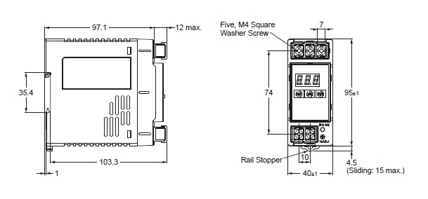 | Insulation resistance | Between all output terminals/alarm outputs and all input terminals/PE terminals: 100 MΩ min., at 500 VDC |