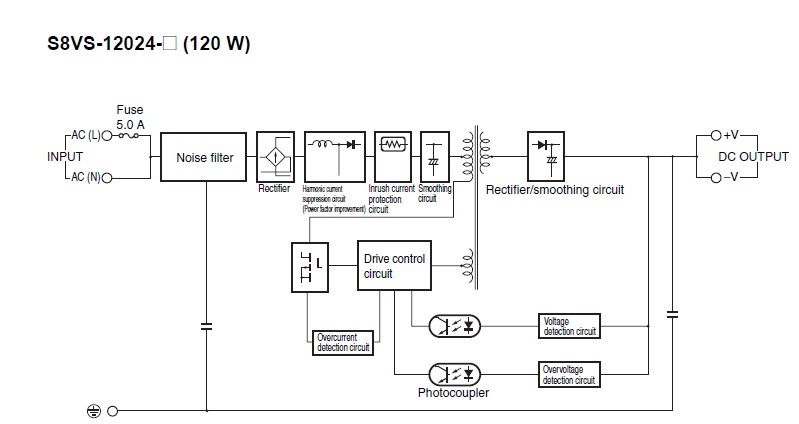 Rated input current | 1.9 A max., 1.5 A typ. (at 100 VAC input)1.1 A max., 0.71 A typ. (at 200 VAC input) |