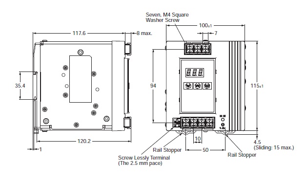 | Insulation resistance | Between all output terminals/alarm outputs and all input terminals/PE terminals: 100 MΩ min., at 500 VDC |