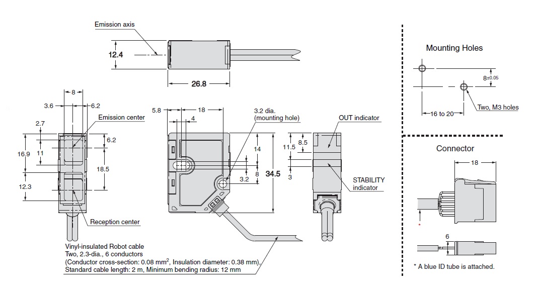 Cảm Biến Lazer Omron E3NC-LH01 5M Smart Laser Sensor Compact Laser Sensor Sensor Head Limited Reflective Sensing distance: 70±15 mm Cable length 5 m