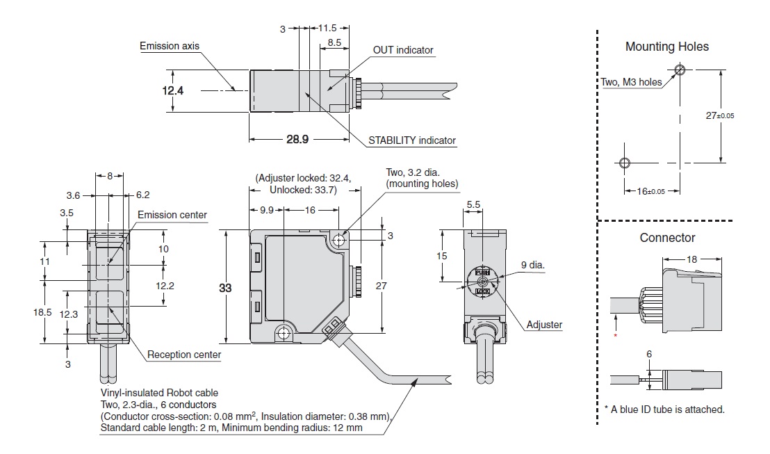 Cảm Biến Lazer Omron E3NC-LH02 2M Smart Laser Sensor Compact Laser Sensor Sensor Head Diffuse-reflective Sensing distance: 1.2 m Cable length 2 m
