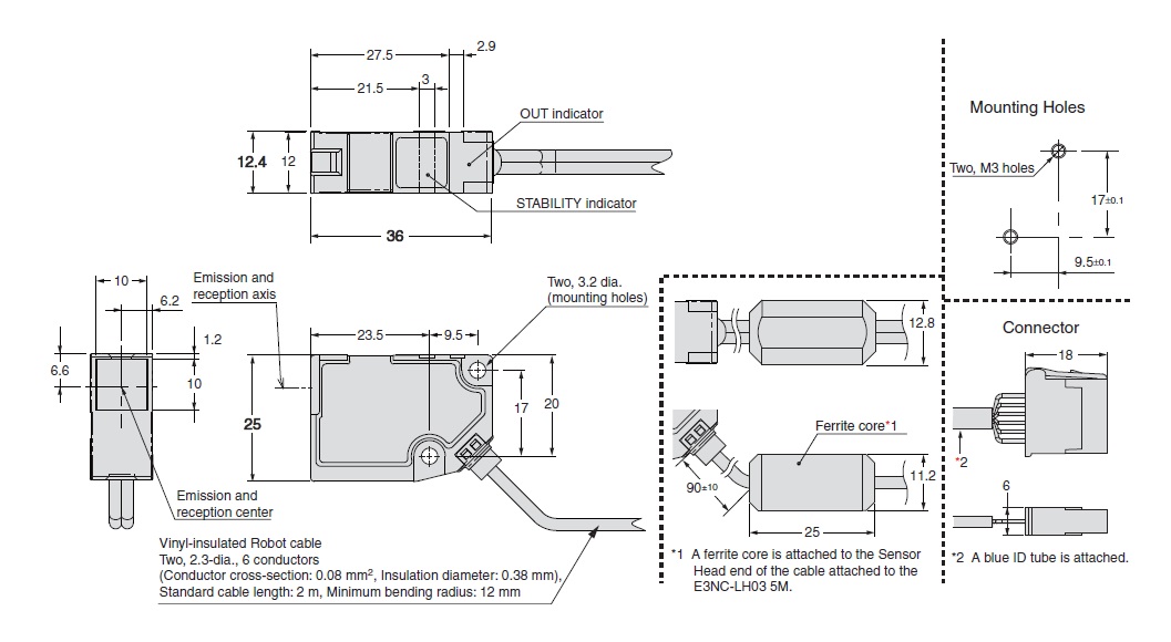 Cảm Biến Lazer Omron E3NC-LH03 2M Smart Laser Sensor Compact Laser Sensor Sensor Head Retro-reflective with M.S.R. function Sensing distance: 8 m Cable length 2 m