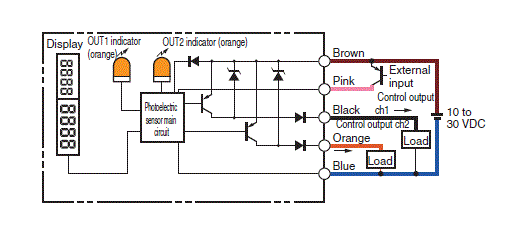 | Control output | PNP open collector30 VDC max.100 mA max. (Groups of 1 to 3 units), 20 mA max. (at 4 or more units are connected)Residual voltage: 1 V max. (Load current Less than 10 mA)Residual voltage: 2 V max. (Load current 10 to 100 mA) |