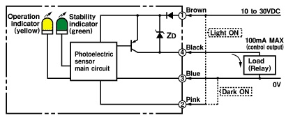 | Control output | PNP open collector30 VDC max.100 mA max.Residual voltage: 2 V max. |