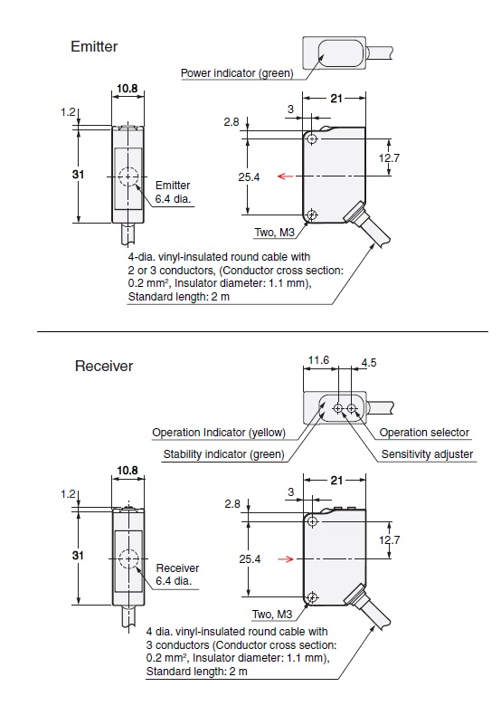 Directional angleEmitter: 3 to 15 °Receiver: 3 to 15 °