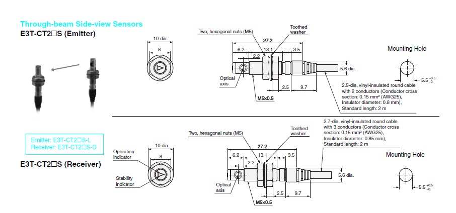Cảm biến quang điện Omron E3T-CT24S 2M Cảm biến quang điện Omron E3T-CT24S 2M Photoelectric Sensor with Built-in Amplifier Small Cylindrical type Through-beam type Sensing distance: 500 mm Side view PNP output Dark-ON Mua Ngay : nhà chế tạo: Omron SKU: E3T-CT24S 2M Ngày giao hàng: 1-3 days Giá cũ: 2.771.485 ₫ Giá bán: 2.309.571 ₫ Số lượng: Thêm vào giỏ hàng Giao đến Chọn quốc gia Vietnam * Khác * Phương pháp vận chuyển Tên Ngày dự kiến giao hàng Giá bán Không có tùy chọn giao hàng nào Áp dụng Custom wishlist được Thêm vào danh sách yêu thích Thêm vào danh sách so sánh Gửi email cho một người bạn Thông tin chi tiết của: Cảm biến quang điện Omron E3T-CT24S 2M Thông số kỹ thuật cơ bản của: E3T-CT24S 2M Sensing method Through-beam type Sensing distance 500 mm Light source Red LED (625 nm) Connection method Pre-wired models Thông số kỹ thuật chi tiết của: E3T-CT24S 2M ModelE3T-CT24S 2MShapeCylinder typeSensing methodThrough-beam typeSensing distance500 mmStandard sensing objectOpaque, 5 mm dia. min.Directional angleReceiver: 10 °Light sourceRed LED (625 nm)Power supply voltage12 to 24 VDC±10% ripple (p-p) 10% max.Current consumptionEmitter: 15 mA max.Receiver: 15 mA max.Control outputPNP open collector30 VDC max.80 mA max.Residual voltage: 1 V max.Operation modeDark-ONProtective circuitOutput short-cut protection, Power supply reverse polarity protectionResponse timeOperate or reset: 0.5 ms max.Ambient illuminanceIncandescent lamp: 3,000 lx max.Ambient temperature range (Operating)-25 to 55 ℃ (with no freezing or condensation)Ambient temperature range (Storage)-30 to 70 ℃ (with no freezing or condensation)Ambient humidity range (Operating)35 to 85 % (with no condensation)Ambient humidity range (Strage)35 to 85 % (with no condensation)Insulation resistance20 MΩ min. (500 VDC megger)Dielectric strength500 VAC 50/60 Hz 1 minVibration resistanceDestruction: 10 to 55 Hz, 1.5 mm double amplitude each in X, Y, and Z directions for 2 hShock resistanceDestruction: 500 m/s2 3 times each in X, Y and Z directionsDegree of protectionIEC: IP65Connection methodPre-wired models (Cable length 2 m)IndicatorOperation indicator (orange), Stability indicator (green)WeightPackage: Approx. 60 gAccessoriesInstruction manual, Hexagonal nuts, Toothed washersMaterialCase: SUS303Lens: PolysulphoneDisplay: PolysulphoneHexagon Nut: SUS303Toothed washers: SUS303 Cam Kết Chất Lượng và Dịch Vụ Chúng tôi có hơn 35.000 sản phẩm vì vậy hãy liên hệ với chúng tôi Để được tư vấn và check tình trạng hàng bạn nhé! AUTO TECH VN cam kết: 1. Hàng Chính Hãng. 2. Xuất được Hóa đơn VAT. 3. Cấp CO/CQ đầy đủ. 4. Giá cạnh tranh. 5. Sản phẩm bảo hành theo chính sách của hãng.6. Miễn Phí hỗ trợ cài đặt và sử dụng thiết bị. Thông Tin Liên Hệ Mua Hàng AUTO TECH VN - AUT.VN ĐT/ Zalo : 0968.053.025 Email: support@aut.vn Email2: sale@aut.vn Địa chỉ: 07 KĐT Flora Mizuki, Đường Số 1, Bình Hưng, Bình Chánh, Hồ Chí Minh Thẻ sản phẩm Cảm biến quang điện (2522) , Photoelectric Sensor with Built-in Amplifier (8) , Sensors (1856) , PhotoelectricSensors (473) , Built-inAmplifier (422) , E3T (124)