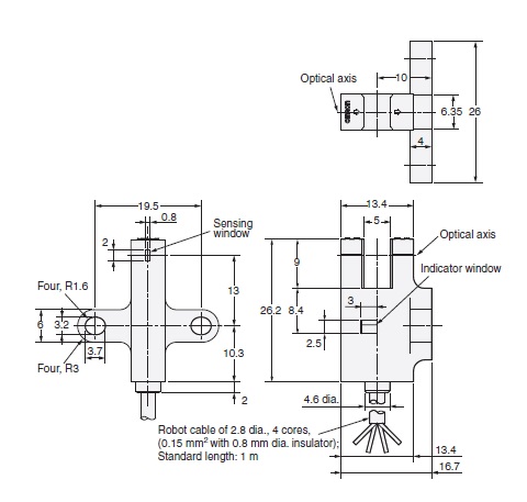 Cảm biến quang điện siêu nhỏ Omron EE-SX675-WR 1M Cảm biến quang điện siêu nhỏ Omron EE-SX675-WR 1M Photomicrosensor Slot type Through-beam T-shaped (slot center 10 mm) Sensing distance: 5 mm (slot width) Dark-ON/Light-ON (selectable) Indicator: Incident light NPN output Pre-wired model 1 m Mua Ngay : nhà chế tạo: Omron SKU: EE-SX675-WR 1M Ngày giao hàng: 1-3 days Giá cũ: 420.433 ₫ Giá bán: 350.361 ₫ Số lượng: Thêm vào giỏ hàng Giao đến Chọn quốc gia Vietnam Vietnam * Khác * Phương pháp vận chuyển Tên Ngày dự kiến giao hàng Giá bán Không có tùy chọn giao hàng nào Áp dụng Custom wishlist được Thêm vào danh sách yêu thích Thêm vào danh sách so sánh Thông Tin Sản Phẩm: EE-SX675-WR 1M Thông Tin Kỹ Thuật cơ bản của : Cảm biến quang điện siêu nhỏ Omron EE-SX676 Type Grooved Type (T-shaped) (Slot center 10 mm) Luminous method Non-modulated Sensing method Through-beam type Sensing distance Slot width: 5 mm Control output (Output type) NPN open collector output Operation mode Dark-ON/Light-ON (selectable) Connection method Pre-wired models Thông số kỹ thuật chi tiết sản phẩm: Cảm biến quang điện siêu nhỏ Omron EE-SX676 TypeGrooved Type (T-shaped) (Slot center 10 mm)Luminous methodNon-modulatedSensing methodThrough-beam typeSensing distanceSlot width: 5 mmOperation modeDark-ON/Light-ON (selectable)Standard sensing objectOpaque, 2 x 0.8 mm min.Differential distance elements0.025 mm max.Light source (Peak wavelength)Infrared LED (940 nm)IndicatorLight indicator (red)Power supply voltage5 to 24 VDC ±10%ripple (p-p) 10 % max.Current consumption35 mAControl outputOutput typeNPN open collector outputLoad power supply voltage5 to 24 VDCLoad curren100 mA max.Residual voltageat 100 mA load current: 0.8 V max.at 40 mA load current: 0.4 V max.Response frequency elements1 kHz min.Average value: 3 kHzIllumination on the surface receiverFluorescent light: 1000 lx max.Ambient temperatureOperating: -25 to 55 ℃ (with no freezing or condensation)Storage: -30 to 80 ℃ (with no freezing or condensation)Ambient humidityOperating: 5 to 85 % (with no condensation)Storage: 5 to 95 % (with no condensation)Vibration resistanceDestruction: 20 to 2000 Hz, peak acceleration 100 m/s2, 1.5-mm double amplitude 2 h each in X, Y, and Z directions (4 min periods)Shock resistanceDestruction: 500 m/s2 for 3 times each in X, Y, and Z directionsDegree of protectionIP50Connection methodPre-wired modelsCable length1 mWeightPackage: Approx. 18.3 gMaterialCase: Polybutylene terephthalate (PBT)Emitter/Receiver Cover: Polycarbonate (PC) Cam Kết Chất Lượng và Dịch Vụ Chúng tôi có hơn 35.000 sản phẩm vì vậy hãy liên hệ với chúng tôi Để được tư vấn và check tình trạng hàng bạn nhé! AUTO TECH VN cam kết: 1. Hàng Chính Hãng. 2. Xuất được Hóa đơn VAT. 3. Cấp CO/CQ đầy đủ. 4. Giá cạnh tranh. 5. Sản phẩm bảo hành theo chính sách của hãng.6. Miễn Phí hỗ trợ cài đặt và sử dụng thiết bị. Thông Tin Liên Hệ AUTO TECH VN - AUT.VN ĐT/ Zalo : 0968.053.025 Email: support@aut.vn Email2: sale@aut.vn Địa chỉ: 07 KĐT Flora Mizuki, Đường Số 1, Bình Hưng, Bình Chánh, Hồ Chí Minh Thẻ sản phẩm Cảm biến quang điện siêu nhỏ (321) , Photomicrosensor (105) , EE-SX675-WR 1M (1) , Sensors (1856) , PhotomicroSensors (136) , Slot-type (128) , EE-SX47/SX67 (47) , EE-SX675-WR1M (1)