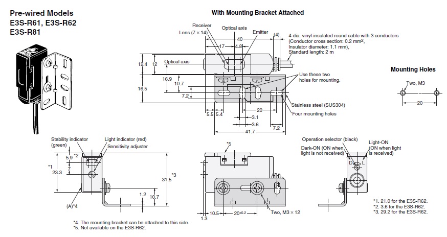 | Material | Case: Polybutylene terephthalate (PBT)Lens: Denatured PolyarylateMounting Bracket: Stainless steel (SUS304) |