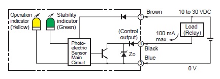 | Control output | NPN open collector30 VDC max.100 mA max.Residual voltage: 2 V max. |