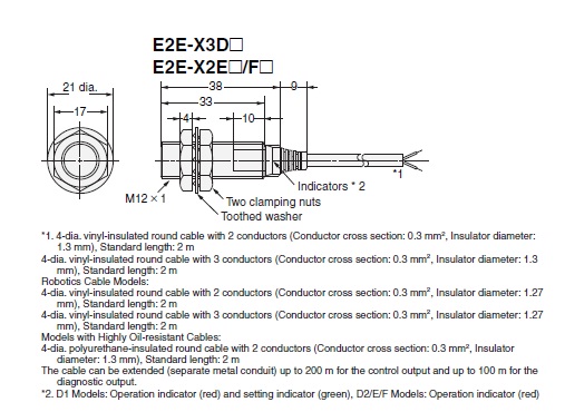 | Material | Case: Brass nickel platingSensing surface: Polybutylene terephthalate (PBT)Cable: PVCClamping nuts: Brass nickel platingToothed washers: Iron zinc plating |