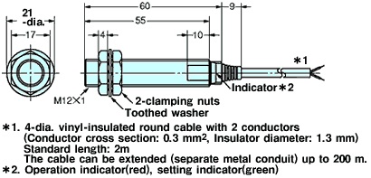 | Material | Case: Brass nickel platingSensing surface: Polybutylene terephthalate (PBT)Cable: PVCClamping nuts: Brass nickel platingToothed washers: Iron zinc plating |