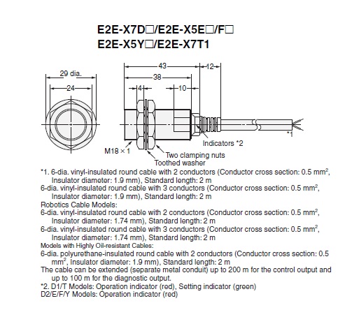 | Material | Case: Brass nickel platingSensing surface: Polybutylene terephthalate (PBT)Cable: PVCClamping nuts: Brass nickel platingToothed washers: Iron zinc plating |