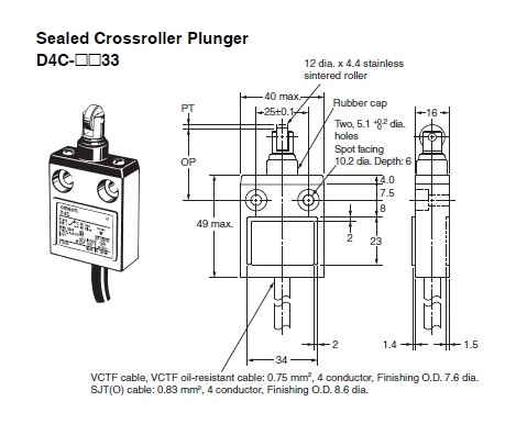 Công tắc hành trình Limit Switch Omron D4C-1233-C Cách lắp đặt: Lắp bề mặt4A at 30VDC, 5A at 250VACLực tác động tối đa: 17.65NPhương pháp kết nối: Dây liềnCấu hình tiếp điểm/đầu ra: SPDTKiểu tác động: Cross-roller plunger 1.234.715 ₫ Thêm vào giỏ hàng Thêm vào danh sách so sánh Danh sách yêu thích tùy chỉnh được Thêm vào danh sách yêu thích