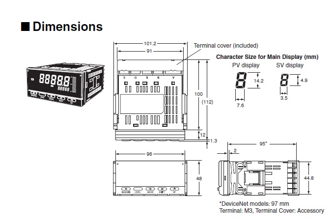 | Degree of protection | Front: NEMA4X for indoor use (equivalent to IP66)Case rear: IP20Terminals: IP00 + finger protection (VDE0106/100) |