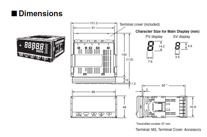 | Degree of protection | Front: NEMA4X for indoor use (equivalent to IP66)Case rear: IP20Terminals: IP00 + finger protection (VDE0106/100) |