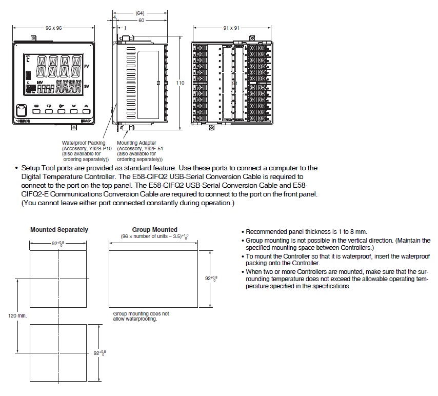 | Sold separately | USB Serial Conversion Cable: E58-CIFQ2Communications Conversion Cable: E58-CIFQ2-ETerminal Cover: E53-COV24Waterproof packing: Y92S-P10Waterproof Cover: Y92A-96NFront Port Cover: Y92S-P7Adapter: Y92F-51CX-Thermo Support Software: EST2-2C-MV4Current Transformer (CT): E54-CT1/E54-CT1L/E54-CT3/E54-CT3L |