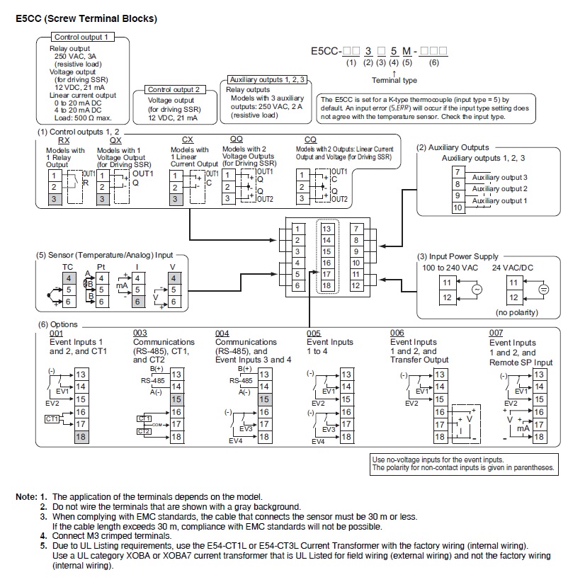 | Sold separately | USB Serial Conversion Cable: E58-CIFQ2Terminal Cover: E53-COV17/E53-COV23Waterproof packing: Y92S-P8Adapter: Y92F-45/Y92F-49Waterproof Cover: Y92A-48NDIN track mounting adapter: Y92F-52Hard Front Cover: Y92A-48HSoft Front Cover: Y92A-48DCX-Thermo Support Software: EST2-2C-MV4 |