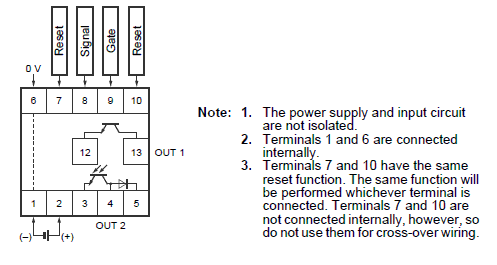 | Voltage input | High level: 4.5 to 30 VDCLow level: 0 to 2 VDC (Input resistance 4.7 kΩ) |