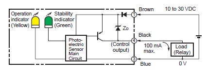 | Control output | PNP open collector30 VDC max.100 mA max.Residual voltage: 2 V max. |