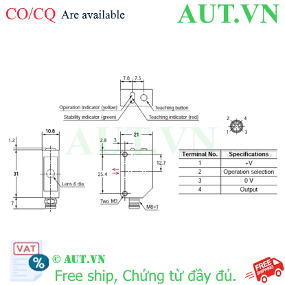 | Sensing method | Retro-reflective with M.S.R. function |