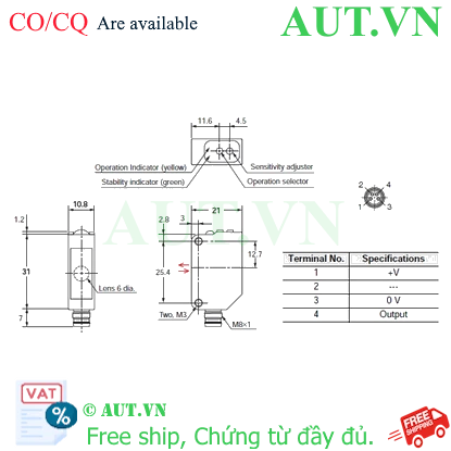 | Operation mode | Light-ON/Dark-ON switch selectable |