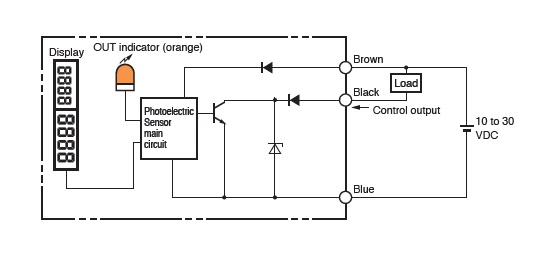 | Control output | NPN open collector30 V max.DCLoad current: 100 mA max. (Groups of 1 to 3 units)/20 mA max. (at 4 or more units are connected)Residual voltage: 1 V max. (10 mA max.)/2 V max. (10 to 100 mA)OFF current: 0.1 mA max. |