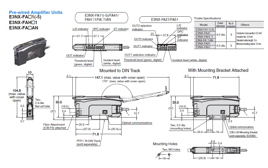 Connection method | Pre-wired models (Cable length: 2 m) |