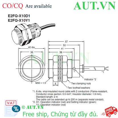 Cảm biến tiệm cận Omron E2FQ-X10E1 2M Ngõ ra: NPNKích cỡ: M30Chiều dài cáp: 2mChế độ hoạt động: NONguồn cấp: 12...24VDCKiểu đấu nối: Dây liềnLoại chống nhiễu: ShieldedKhoảng cách phát hiện: 10mm 4.327.884 ₫ 3.606.570 ₫ Thêm vào giỏ hàng Thêm vào danh sách so sánh Danh sách yêu thích tùy chỉnh được Thêm vào danh sách yêu thích
