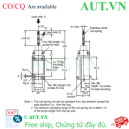 Công tắc hành trình Limit Switch Omron D4A-3114N Cách lắp đặt: Lắp bề mặt10A at 250VAC, 6A at 30VDCLực tác động tối đa: 1.47NPhương pháp kết nối: Bắt vítCấu hình tiếp điểm/đầu ra: SPDTKiểu tác động: Flexible rod: Plastic rod 3.087.968 ₫ 2.573.307 ₫ Thêm vào giỏ hàng Thêm vào danh sách so sánh Danh sách yêu thích tùy chỉnh được Thêm vào danh sách yêu thích