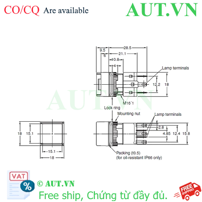 Công tắc nút nhấn Omron A165-AWM-2 D16Trắng2NO+2NCNhấn nhảKhông đènChất liệu vỏ: PlasticSquare with 2-sided barrierChất liệu vòng bezel: Plastic nhà chế tạo: Omron SKU: A165-AWM-2 Tải xuống mẫu Giá cũ: 412.592 ₫ Giá bán: 343.827 ₫ Số lượng: Thêm vào giỏ hàng Danh sách yêu thích tùy chỉnh được Thêm vào danh sách yêu thích Thêm vào danh sách so sánh Gửi email cho một người bạn Thông tin chi tiết của: Công tắc nút nhấn Omron A165-AWM-2 Thông số kỹ thuật cơ bản của: A165-AWM-2 Type Pushbutton Switch Shape Cylindrical type (16 mm dia.) Operating portion Square 2-way guard White Lighted method Non-lighted Terminal Quick connect terminal (#110/t=0.5) / Solder terminal Thông số kỹ thuật chi tiết của: A165-AWM-2 ModelA165-AWM-2TypePushbutton Switch ShapeCylindrical type (16 mm dia.)Lighted/Non-lightedNon-lightedOperating portionShape of operating portionSquare 2-way guardColor of operating portionWhiteOperating functionMomentaryLoadGeneral load/Micro loadMinimum applicable load1 mA at 5 VDCContact ratingContact formDPDTRatings (AC)Resistive load: 5 A at 125 VAC/3 A at 250 VACRatings (DC)Resistive load: 3 A at 30 VDCRatings explanationConditions: No vibration and no shock, Temperature 20±2 ℃, Operating frequency 20 operations/minTerminal specificationsQuick connect terminal (#110/t=0.5) / Solder terminalPermissible operating frequencyElectrical: Max. 20 operations / 1 minuteMechanical: Max. 120 operations / 1 minuteInsulation resistance100 MΩ min. (at 500 VDC)Dielectric strengthBetween each terminal of the same polarities: 1000 VAC 50/60 Hz 1 minBetween each terminal of the different polarities: 2000 VAC 50/60 Hz 1 minBetween each terminaland ground: 2000 VAC 50/60 Hz 1 minVibration resistanceMalfunction: 10 to 55 Hz, 1.5 mm double amplitude (malfunction: 1 ms max.)Shock resistanceDestruction: 500 m/s2 max.Malfunction: 150 m/s2 max. (malfunction time is 1 ms max.)Ambient temperature rangeOperating: -10 to 55 ℃ (with no freezing or condensation)Storage: -25 to 65 ℃ (with no freezing or condensation)Ambient humidity rangeOperating: 35 to 85 %Degree of protectionIP66 oil-resistant typeClassification of protection against electric shockClass IIPTI (Tracking characteristic)175Pollution degree3 (IEC60947-5-1) Cam Kết Chất Lượng và Dịch Vụ Chúng tôi có hơn 35.000 sản phẩm vì vậy hãy liên hệ với chúng tôi Để được tư vấn và check tình trạng hàng bạn nhé! AUTO TECH VN cam kết: 1. Hàng Chính Hãng. 2. Xuất được Hóa đơn VAT. 3. Cấp CO/CQ đầy đủ. 4. Giá cạnh tranh. 5. Sản phẩm bảo hành theo chính sách của hãng.6. Miễn Phí hỗ trợ cài đặt và sử dụng thiết bị. Thông Tin Liên Hệ Mua Hàng AUTO TECH VN - AUT.VN ĐT/ Zalo : 0968.053.025 Email: support@aut.vn Email2: sale@aut.vn Địa chỉ: 07 KĐT Flora Mizuki, Đường Số 1, Bình Hưng, Bình Chánh, Hồ Chí Minh Thẻ sản phẩm Công tắc nút nhấn (80433) , Omron (49476) , Switches (1905) , Push Buttons / Indicator Lamps (1779) , φ16 Type (1293) , A16 (1203)