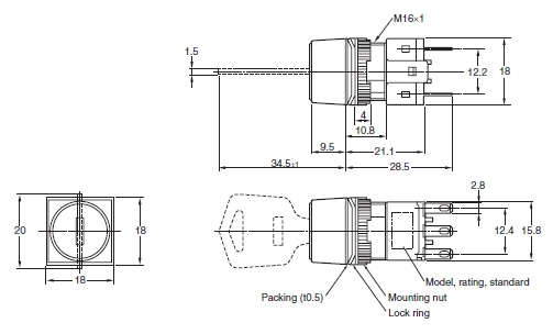 Công tắc nút nhấn Omron A165K-A2AL-2 Công tắc nút nhấn Omron A165K-A2AL-2 Key-type Selector Switch (Cylindrical 16-dia.) Square 2 notches Automatic reset Key release position: Left DPDT Solder terminal nhà chế tạo: Omron SKU: A165K-A2AL-2 Ngày giao hàng: 1-3 days Giá cũ: 968.814 ₫ Giá bán: 807.345 ₫ Số lượng: Thêm vào giỏ hàng Giao đến Chọn quốc gia Vietnam * Khác * Phương pháp vận chuyển Tên Ngày dự kiến giao hàng Giá bán Không có tùy chọn giao hàng nào Áp dụng Custom wishlist được Thêm vào danh sách yêu thích Thêm vào danh sách so sánh Gửi email cho một người bạn Thông tin chi tiết của: Công tắc nút nhấn Omron A165K-A2AL-2 Thông số kỹ thuật cơ bản của: A165K-A2AL-2 Type Key-type selector switch Shape Cylindrical type (16 mm dia.) Operating portion Square Number of notch 2 notches Terminal Solder terminal Thông số kỹ thuật chi tiết của: A165K-A2AL-2 ModelA165K-A2AL-2TypeKey-type selector switchShapeCylindrical type (16 mm dia.)Number of notch2 notchesOperating portionShape of operating portionSquareKey release positionLeft sideReset methodLeft automaticLoadGeneral load/Micro loadMinimum applicable load1 mA at 5 VDCContact ratingContact formDPDTRatings (AC)Resistive load: 5 A at 125 VAC/3 A at 250 VACRatings (DC)Resistive load: 3 A at 30 VDCRatings explanationConditions: No vibration and no shock, Temperature 20±2 ℃, Operating frequency 20 operations/minTerminal specificationsSolder terminalPermissible operating frequencyElectrical: Max. 10 operations / 1 minuteMechanical: Max. 20 operations / 1 minuteInsulation resistance100 MΩ min. (at 500 VDC)Dielectric strengthBetween each terminal of the same polarities: 1000 VAC 50/60 Hz 1 minBetween each terminal of the different polarities: 2000 VAC 50/60 Hz 1 minBetween each terminaland ground: 2000 VAC 50/60 Hz 1 minVibration resistanceMalfunction: 10 to 55 Hz, 1.5 mm double amplitude (malfunction: 1 ms max.)Shock resistanceDestruction: 500 m/s2 max.Malfunction: 150 m/s2 max. (malfunction time is 1 ms max.)Ambient temperature rangeOperating: -10 to 55 ℃ (with no freezing or condensation)Storage: -25 to 65 ℃ (with no freezing or condensation)Ambient humidity rangeOperating: 35 to 85 %Degree of protectionIP65 oil-resistant typeClassification of protection against electric shockClass IIPTI (Tracking characteristic)175Pollution degree3 (IEC60947-5-1)WeightApprox. 26.5 g (With 1 key) Cam Kết Chất Lượng và Dịch Vụ Chúng tôi có hơn 35.000 sản phẩm vì vậy hãy liên hệ với chúng tôi Để được tư vấn và check tình trạng hàng bạn nhé! AUTO TECH VN cam kết: 1. Hàng Chính Hãng. 2. Xuất được Hóa đơn VAT. 3. Cấp CO/CQ đầy đủ. 4. Giá cạnh tranh. 5. Sản phẩm bảo hành theo chính sách của hãng.6. Miễn Phí hỗ trợ cài đặt và sử dụng thiết bị. Thông Tin Liên Hệ Mua Hàng AUTO TECH VN - AUT.VN ĐT/ Zalo : 0968.053.025 Email: support@aut.vn Email2: sale@aut.vn Địa chỉ: 07 KĐT Flora Mizuki, Đường Số 1, Bình Hưng, Bình Chánh, Hồ Chí Minh Thẻ sản phẩm Công tắc nút nhấn (83291) , Switches (1905) , Omron (52360) , Push Buttons / Indicator Lamps (1779) , φ16 Type (1293) , A165K (36)