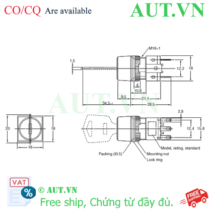 Công tắc nút nhấn Omron A165K-A3ML-2 Tự giữ2NO+2NCCó chìa khóaSố vị trí: 3Vặn chìa khóaKích thước lắp: D16 nhà chế tạo: Omron SKU: A165K-A3ML-2 Tải xuống mẫu Giá cũ: 916.542 ₫ Giá bán: 763.785 ₫ Số lượng: Thêm vào giỏ hàng Danh sách yêu thích tùy chỉnh được Thêm vào danh sách yêu thích Thêm vào danh sách so sánh Gửi email cho một người bạn Thông tin chi tiết của: Công tắc nút nhấn Omron A165K-A3ML-2 Thông số kỹ thuật cơ bản của: A165K-A3ML-2 Type Key-type selector switch Shape Cylindrical type (16 mm dia.) Operating portion Square Number of notch 3 notches Terminal Solder terminal Thông số kỹ thuật chi tiết của: A165K-A3ML-2 ModelA165K-A3ML-2TypeKey-type selector switchShapeCylindrical type (16 mm dia.)Number of notch3 notchesOperating portionShape of operating portionSquareKey release positionLeft sideReset methodManualLoadGeneral load/Micro loadMinimum applicable load1 mA at 5 VDCContact ratingContact formDPDTRatings (AC)Resistive load: 5 A at 125 VAC/3 A at 250 VACRatings (DC)Resistive load: 3 A at 30 VDCRatings explanationConditions: No vibration and no shock, Temperature 20±2 ℃, Operating frequency 20 operations/minTerminal specificationsSolder terminalPermissible operating frequencyElectrical: Max. 10 operations / 1 minuteMechanical: Max. 20 operations / 1 minuteInsulation resistance100 MΩ min. (at 500 VDC)Dielectric strengthBetween each terminal of the same polarities: 1000 VAC 50/60 Hz 1 minBetween each terminal of the different polarities: 2000 VAC 50/60 Hz 1 minBetween each terminaland ground: 2000 VAC 50/60 Hz 1 minVibration resistanceMalfunction: 10 to 55 Hz, 1.5 mm double amplitude (malfunction: 1 ms max.)Shock resistanceDestruction: 500 m/s2 max.Malfunction: 150 m/s2 max. (malfunction time is 1 ms max.)Ambient temperature rangeOperating: -10 to 55 ℃ (with no freezing or condensation)Storage: -25 to 65 ℃ (with no freezing or condensation)Ambient humidity rangeOperating: 35 to 85 %Degree of protectionIP65 oil-resistant typeClassification of protection against electric shockClass IIPTI (Tracking characteristic)175Pollution degree3 (IEC60947-5-1)WeightApprox. 26.5 g (With 1 key) Cam Kết Chất Lượng và Dịch Vụ Chúng tôi có hơn 35.000 sản phẩm vì vậy hãy liên hệ với chúng tôi Để được tư vấn và check tình trạng hàng bạn nhé! AUTO TECH VN cam kết: 1. Hàng Chính Hãng. 2. Xuất được Hóa đơn VAT. 3. Cấp CO/CQ đầy đủ. 4. Giá cạnh tranh. 5. Sản phẩm bảo hành theo chính sách của hãng.6. Miễn Phí hỗ trợ cài đặt và sử dụng thiết bị. Thông Tin Liên Hệ Mua Hàng AUTO TECH VN - AUT.VN ĐT/ Zalo : 0968.053.025 Email: support@aut.vn Email2: sale@aut.vn Địa chỉ: 07 KĐT Flora Mizuki, Đường Số 1, Bình Hưng, Bình Chánh, Hồ Chí Minh Thẻ sản phẩm Công tắc nút nhấn (80433) , Omron (49476) , Switches (1905) , Push Buttons / Indicator Lamps (1779) , φ16 Type (1293) , A165K (36)
