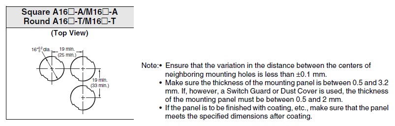 Công tắc nút nhấn Omron A16L-TGM-24D-2P Loại sản phẩm: Nút nhấn mặt trònType: Nhấn giữKích thước: Phi 16 nhà chế tạo: Omron SKU: A16L-TGM-24D-2P Giá cũ: 1.188 ₫ Giá bán: 990 ₫ Số lượng: Thêm vào giỏ hàng Danh sách yêu thích tùy chỉnh được Thêm vào danh sách yêu thích Thêm vào danh sách so sánh Gửi email cho một người bạn Thông tin chi tiết của: Công tắc nút nhấn Omron A16L-TGM-24D-2P Thông số kỹ thuật cơ bản của: A16L-TGM-24D-2P Type Pushbutton Switch Shape Cylindrical type (16 mm dia.) Operating portion Round projection type Green Lighted method Lighted (LED) Terminal PCB terminal Thông số kỹ thuật chi tiết của: A16L-TGM-24D-2P ModelA16L-TGM-24D-2PTypePushbutton Switch ShapeCylindrical type (16 mm dia.)Lighted/Non-lightedLightedOperating portionShape of operating portionRound projection typeColor of operating portionGreenOperating functionMomentaryLoadGeneral load/Micro loadMinimum applicable load1 mA at 5 VDCLampMethod of lamp unitLEDLamp colorGreenRated voltage24 VAC/VDCOperating voltage24 VAC/VDC±5%Rated current8 mAContact ratingContact formDPDTRatings (AC)Resistive load: 5 A at 125 VAC/3 A at 250 VACRatings (DC)Resistive load: 3 A at 30 VDCRatings explanationConditions: No vibration and no shock, Temperature 20±2 ℃, Operating frequency 20 operations/minTerminal specificationsPCB terminalPermissible operating frequencyElectrical: Max. 20 operations / 1 minuteMechanical: Max. 120 operations / 1 minuteInsulation resistance100 MΩ min. (at 500 VDC)Dielectric strengthBetween each terminal of the same polarities: 1000 VAC 50/60 Hz 1 minBetween each terminal of the different polarities: 2000 VAC 50/60 Hz 1 minBetween each terminaland ground: 2000 VAC 50/60 Hz 1 minBetween lamp terminals: 1000 VAC 50/60 Hz 1 min (with LED not mounted)Vibration resistanceMalfunction: 10 to 55 Hz, 1.5 mm double amplitude (malfunction: 1 ms max.)Shock resistanceDestruction: 500 m/s2 max.Malfunction: 150 m/s2 max. (malfunction time is 1 ms max.)Ambient temperature rangeOperating: -10 to 55 ℃ (with no freezing or condensation)Storage: -25 to 65 ℃ (with no freezing or condensation)Ambient humidity rangeOperating: 35 to 85 %Degree of protectionIP40Classification of protection against electric shockClass IIPTI (Tracking characteristic)175Pollution degree3 (IEC60947-5-1) Cam Kết Chất Lượng và Dịch Vụ Chúng tôi có hơn 35.000 sản phẩm vì vậy hãy liên hệ với chúng tôi Để được tư vấn và check tình trạng hàng bạn nhé! AUTO TECH VN cam kết: 1. Hàng Chính Hãng. 2. Xuất được Hóa đơn VAT. 3. Cấp CO/CQ đầy đủ. 4. Giá cạnh tranh. 5. Sản phẩm bảo hành theo chính sách của hãng.6. Miễn Phí hỗ trợ cài đặt và sử dụng thiết bị. Thông Tin Liên Hệ Mua Hàng AUTO TECH VN - AUT.VN ĐT/ Zalo : 0968.053.025 Email: support@aut.vn Email2: sale@aut.vn Địa chỉ: 07 KĐT Flora Mizuki, Đường Số 1, Bình Hưng, Bình Chánh, Hồ Chí Minh Thẻ sản phẩm Công tắc nút nhấn (80433) , Omron (49476) , Switches (1905) , Push Buttons / Indicator Lamps (1779) , φ16 Type (1293) , A16 (1203)