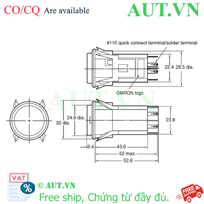 Công tắc nút nhấn Omron A3PT-90C12-24CW Loại sản phẩm: Nút nhấn mặt trònType: Nhấn nhảTiếp điểm: 2NO+2NC nhà chế tạo: Omron SKU: A3PT-90C12-24CW Giá cũ: 1.188 ₫ Giá bán: 990 ₫ Số lượng: Thêm vào giỏ hàng Danh sách yêu thích tùy chỉnh được Thêm vào danh sách yêu thích Thêm vào danh sách so sánh Gửi email cho một người bạn Thông tin chi tiết của: Công tắc nút nhấn Omron A3PT-90C12-24CW Thông số kỹ thuật cơ bản của: A3PT-90C12-24CW Type Lighted Pushbutton Switch Shape Large square body type Operating portion Round type White Lighted method Lighted (LED lamp) Terminal Quick connect terminal (#110) / Solder terminal Thông số kỹ thuật chi tiết của: A3PT-90C12-24CW ModelA3PT-90C12-24CWTypeLighted Pushbutton Switch ShapeLarge square body typeLighted/Non-lightedLightedOperating portionShape of operating portionRound typeColor of operating portionWhiteOperating functionMomentaryLoadFor General loadLampMethod of lamp unitLED lampLamp colorWhiteNumber of lamps2Rated voltage24 VDCOperating voltage24 VDC±5%Rated currentApprox. 12.5 mAContact ratingContact formDPDTRatings (AC)Resistive load: 5 A at 125 VAC/3 A at 250 VACLamp load: 7 A at 125 VAC/0.5 A at 250 VACInductive load: 3 A at 125 VAC/2 A at 250 VACMotor load: 1.3 A at 125 VAC/0.8 A at 250 VACRatings (DC)Resistive load: 5 A at 8 VDC/5 A at 14 VDC/4 A at 30 VDC/0.4 A at 125 VDC/0.2 A at 250 VDCLamp load: 2 A at 8 VDC/2 A at 14 VDC/2 A at 30 VDC/0.05 A at 125 VDC/0.03 A at 250 VDCInductive load: 4 A at 8 VDC/4 A at 14 VDC/3 A at 30 VDC/0.4 A at 125 VDC/0.2 A at 250 VDCMotor load: 3 A at 8 VDC/3 A at 14 VDC/3 A at 30 VDC/0.05 A at 125 VDC/0.03 A at 250 VDCRatings explanationThe values indicate the steady-state current.Lamp load has an inrush current of 10 times the steady-state current.Inductive load has a power factor of 0.4 Min. (AC) and a time constant of 7 ms Max. (DC).Motor load has an inrush current of 6 times the steady-state current.Conditions: Temperature 20±2 ℃, Ambient humidity 65±5% RH, Operating frequency 20 operations/minTerminal specificationsQuick connect terminal (#110) / Solder terminalPermissible operating frequencyElectrical: Max. 30 operations / 1 minuteMechanical: Max. 120 operations / 1 minuteInrush currentNC: 10 A max.NO: 10 A max.Insulation resistance100 MΩ min. (at 500 VDC)Dielectric strengthBetween each terminal of the same polarities: 1000 VAC 50/60 Hz 1 minBetween each terminal of the different polarities: 2000 VAC 50/60 Hz 1 minBetween live-metallic part and ground: 2000 VAC 50/60 Hz 1 minBetween each terminal and non-live-metallic part: 2000 VAC 50/60 Hz 1 minBetween lamp terminals: 1000 VAC 50/60 Hz 1 min (with LED not mounted)Vibration resistanceMalfunction: 10 to 55 Hz, 1.5 mm double amplitude (malfunction: 1 ms max.)Shock resistanceDestruction: 500 m/s2 max.Malfunction: 200 m/s2 max. (malfunction time is 1 ms max.)Ambient temperature rangeOperating: -10 to 40 ℃ (with no freezing or condensation)Storage: -25 to 65 ℃ (with no freezing or condensation)Ambient humidity rangeOperating: 35 to 85 %Degree of protectionIP40Classification of protection against electric shockClass IIPTI (Tracking characteristic)175Pollution degree3 (IEC60947-5-1)Case colorLight grayWeightApprox. 30 g Cam Kết Chất Lượng và Dịch Vụ Chúng tôi có hơn 35.000 sản phẩm vì vậy hãy liên hệ với chúng tôi Để được tư vấn và check tình trạng hàng bạn nhé! AUTO TECH VN cam kết: 1. Hàng Chính Hãng. 2. Xuất được Hóa đơn VAT. 3. Cấp CO/CQ đầy đủ. 4. Giá cạnh tranh. 5. Sản phẩm bảo hành theo chính sách của hãng.6. Miễn Phí hỗ trợ cài đặt và sử dụng thiết bị. Thông Tin Liên Hệ Mua Hàng AUTO TECH VN - AUT.VN ĐT/ Zalo : 0968.053.025 Email: support@aut.vn Email2: sale@aut.vn Địa chỉ: 07 KĐT Flora Mizuki, Đường Số 1, Bình Hưng, Bình Chánh, Hồ Chí Minh Thẻ sản phẩm Công tắc nút nhấn (80433) , Omron (49476) , Switches (1905) , Push Buttons / Indicator Lamps (1779) , Square / Rectangular-body Type (164) , A3P (160)