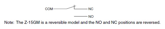 Ratings (DC) Non-Inductive loadResistive load: 15 A at 8 VDC, 15 A at 14 VDC, 6 A at 30 VDC, 0.5 A at 125 VDC, 0.25 A at 250 VDCLamp load (NC): 3 A at 8 VDC, 3 A at 14 VDC, 3 A at 30 VDC, 0.5 A at 125 VDC, 0.25 A at 250 VDCLamp load (NO): 1.5 A at 8 VDC, 1.5 A at 14 VDC, 1.5 A at 30 VDC, 0.5 A at 125 VDC, 0.25 A at 250 VDCInductive load: 15 A at 8 VDC, 10 A at 14 VDC, 5 A at 30 VDC, 0.05 A at 125 VDC, 0.03 A at 250 VDCMotor load (NC): 5 A at 8 VDC, 5 A at 14 VDC, 5 A at 30 VDC, 0.05 A at 125 VDC, 0.03 A at 250 VDCMotor load (NO): 2.5 A at 8 VDC, 2.5 A at 14 VDC, 2.5 A at 30 VDC, 0.05 A at 125 VDC, 0.03 A at 250 VDC