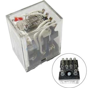 Rơ le trung gian|Số chân: 14 chân|Hình dạng chân: Dẹt|4PDT |Điện áp cuộn dây: 100...110VAC|Dòng điện: 1A