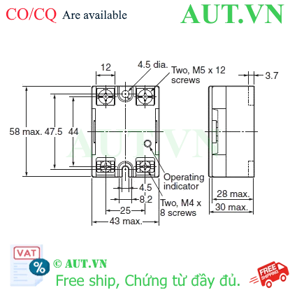 Relay bán dẫn Omron G3NA-440B-UTU-2 AC100-240 1 phaDòng điện tải: 40AĐiện áp tải: 200...480VACĐiện áp ngõ vào: 100...240VACĐặc điểm chuyển mạch: Zero-cross 2.081.355 ₫ Thêm vào giỏ hàng Thêm vào danh sách so sánh Danh sách yêu thích tùy chỉnh được Thêm vào danh sách yêu thích